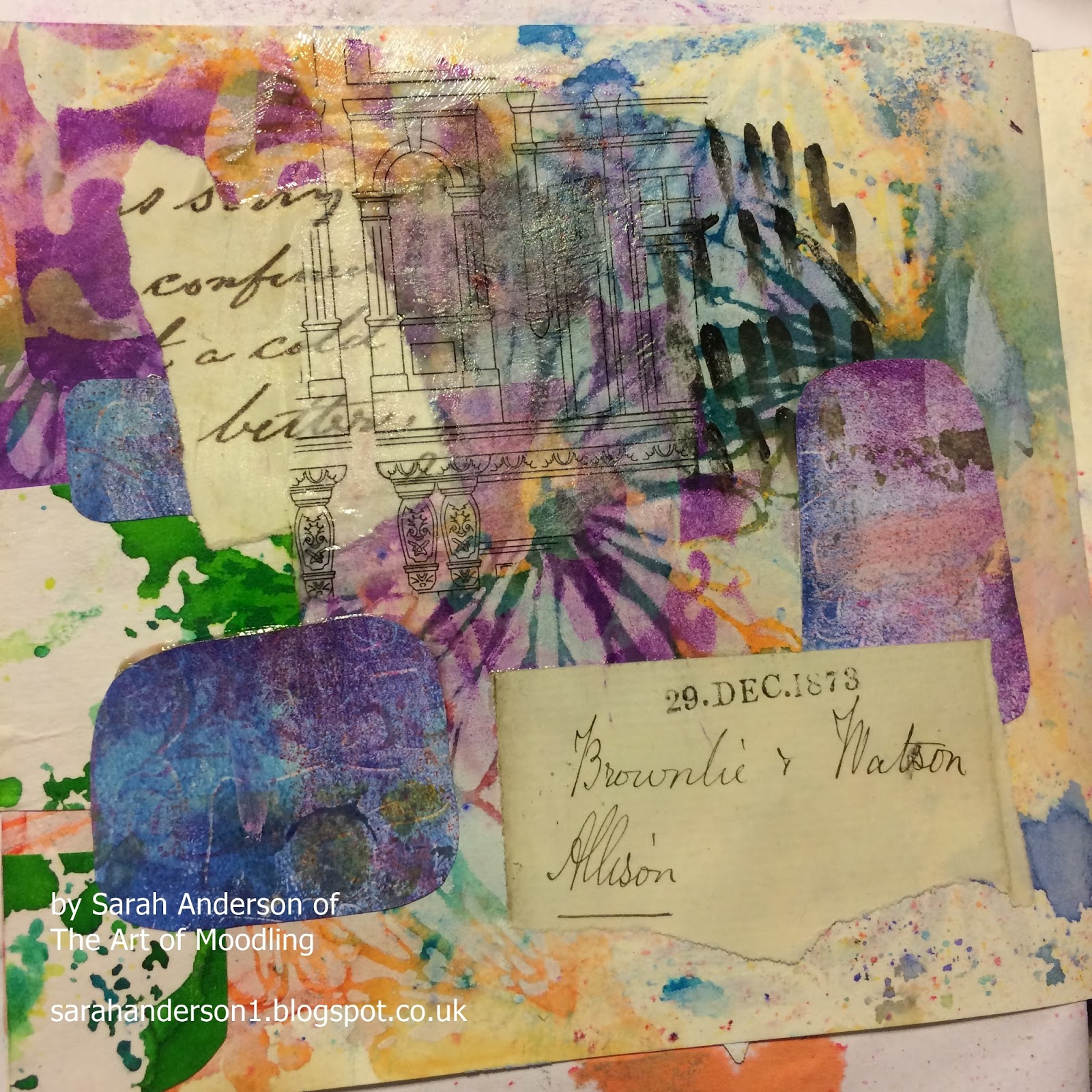 I challenged myself to use colours I don't normally use for these pages, and I was also trying out a different process, following one of Rae's videos and trying out different layers ..